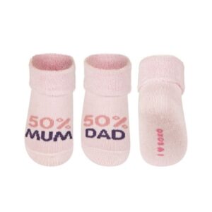 Comprar los Calcetines Bebé con Mensaje es una opción perfecta para mantener a tu bebé cómodo y a la moda. Este par de calcetines está diseñado con un mensaje encantador que añade un toque de personalidad y diversión a los conjuntos de tu bebé. Hechos con materiales suaves y elásticos, estos calcetines proporcionan un ajuste cómodo y seguro para los pies delicados de tu pequeño. El diseño de los calcetines incluye mensajes como “50% MUM” y “50% DAD”, creando un estilo tierno y único para tu bebé.