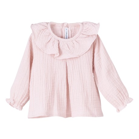 La Camisa gasa Kore-Calamaro Baby es una prenda elegante y delicada que proporcionará un toque sofisticado al vestuario de tu bebé. Confeccionada en gasa ligera, esta camisa destaca por su cuello de volante que le da un aire romántico y encantador. El diseño de manga larga con puños de volante también añade un detalle delicado y femenino.
