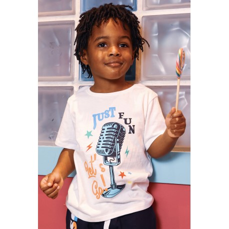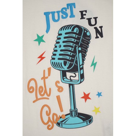 La camiseta niño manga corta Music de Street Monkey es perfecta para los pequeños amantes de la música. Con un diseño divertido que incluye un micrófono y el mensaje “Just Fun, Just Go”, esta camiseta es ideal para los días calurosos y llenos de energía.