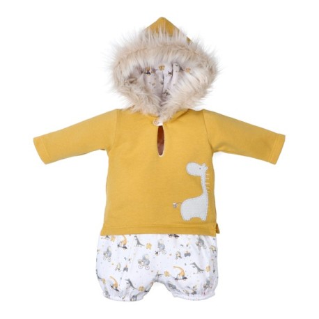 Este conjunto está confeccionado en tejidos respetuosos con la piel de los más pequeños, evitando irritaciones y ofreciendo una sensación agradable en contacto directo. Su diseño combina practicidad, ternura y calidad, convirtiéndolo en una prenda versátil para usar tanto en interiores como en exteriores.