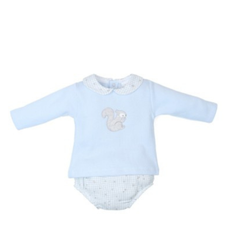 El Conjunto 2 Piezas Bebé Niño Ardilla es la prenda perfecta para vestir a tu pequeño con comodidad y estilo. Este conjunto encantador incluye un suéter de manga larga color azul, con un bordado de ardilla en el pecho, y un cubrepañal con estampado a cuadros a juego. Ideal para el día a día o para cualquier ocasión especial, este conjunto asegura que tu bebé se sienta cómodo mientras luce adorable.