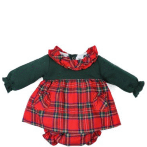 La parte superior presenta un corte cómodo y agradable al tacto, con detalles decorativos que aportan un acabado elegante y muy actual. El cuello con volantes y los puños rematados añaden un toque especial que realza el diseño, manteniendo un equilibrio perfecto entre estilo y funcionalidad. Su cierre trasero facilita vestir a la pequeña de manera rápida y sin molestias.