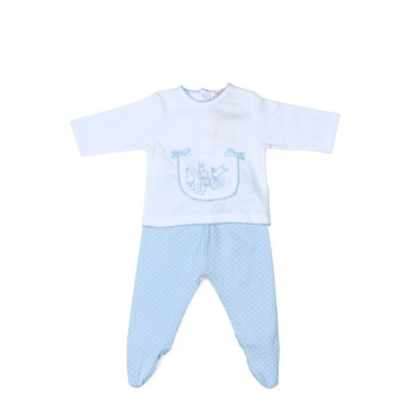 El Conjunto Largo Mudita Algodón – Tony Bambino es una prenda encantadora y cómoda, ideal para mantener a tu bebé calentito y elegante durante el día. Confeccionado en algodón suave, este conjunto incluye una camiseta de manga larga blanca con un adorable bordado en el pecho, y unos pantalones largos azules con pequeños dibujos de puntos. El diseño es sencillo pero delicado, y su color suave lo convierte en una opción perfecta para las primeras temporadas de entretiempo.