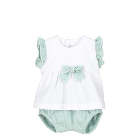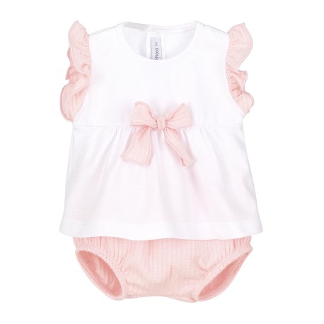El diseño de este conjunto es perfecto para los días cálidos, manteniendo a tu pequeña fresca y libre de molestias mientras juega y se divierte. La blusa presenta un elegante lazo que añade un toque de estilo, mientras que el pololo proporciona la comodidad que tu bebé necesita.