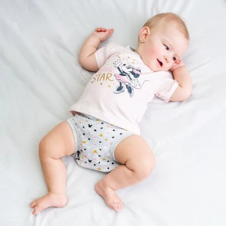 El material de algodón es suave y transpirable, por lo que asegura que tu bebé se mantenga fresco y cómodo mientras juega o descansa. Además, el corte cómodo permite total libertad de movimiento, lo que es perfecto para los más pequeños. Sin duda, el diseño de Minnie hará que tu pequeña se vea adorable y a la moda en todo momento.
