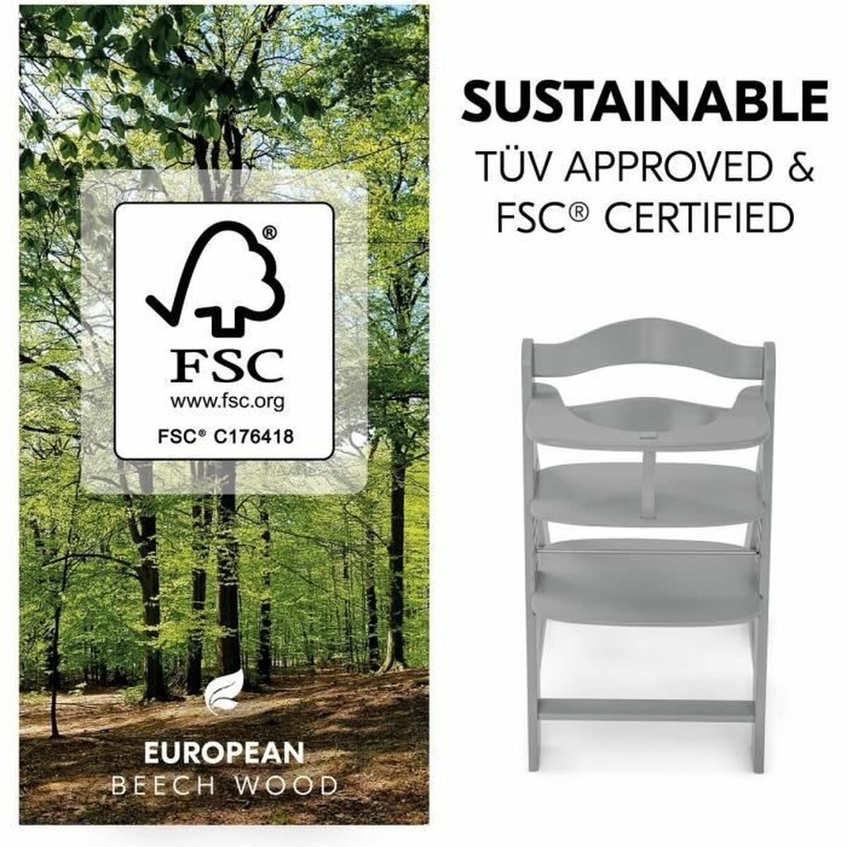 Su estructura está elaborada en madera de alta calidad, lo que garantiza estabilidad, durabilidad y resistencia a lo largo del tiempo. Gracias a su capacidad de carga de hasta 90 kg, no solo funciona como trona, sino también como silla evolutiva cuando el niño crece, adaptándose a diferentes etapas de desarrollo.