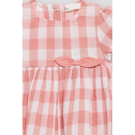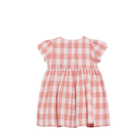 El corte del vestido es cómodo y permite libertad de movimiento. El diseño con cuadros vichy es atemporal y fácil de combinar, lo que lo convierte en una prenda versátil para ocasiones casuales o especiales, ya sea para un paseo en el parque o una salida familiar.