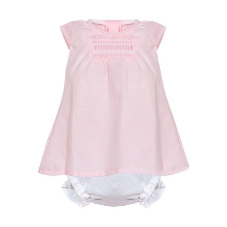 El Vestido Desmangado con Cubre Pañal de BABYZONE es una opción adorable y cómoda para tu bebé niña. Este vestido en color rosa suave cuenta con un diseño sencillo pero elegante, ideal para cualquier ocasión especial o para el día a día. La parte superior del vestido presenta detalles de bordado smocked, mientras que el cubre pañal blanco a juego añade un toque práctico y delicado.
