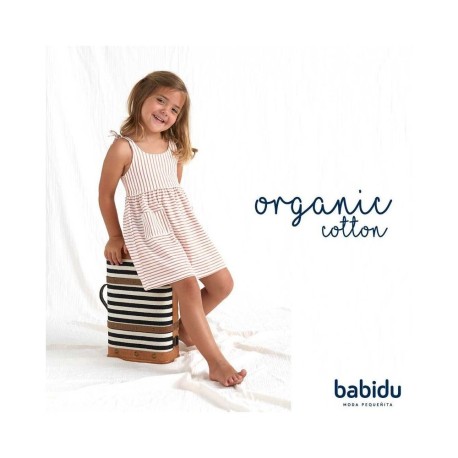 El Vestido tirantes algodón rayas Babidu es una prenda encantadora y cómoda para tu pequeña. Con un diseño fresco y alegre, este vestido es ideal para los días cálidos. El estampado de rayas en tonos suaves lo convierte en una opción versátil para cualquier ocasión, desde una salida casual hasta una celebración especial. Fabricado en algodón, este vestido garantiza comodidad y suavidad para la piel delicada de tu bebé, permitiendo total libertad de movimiento.